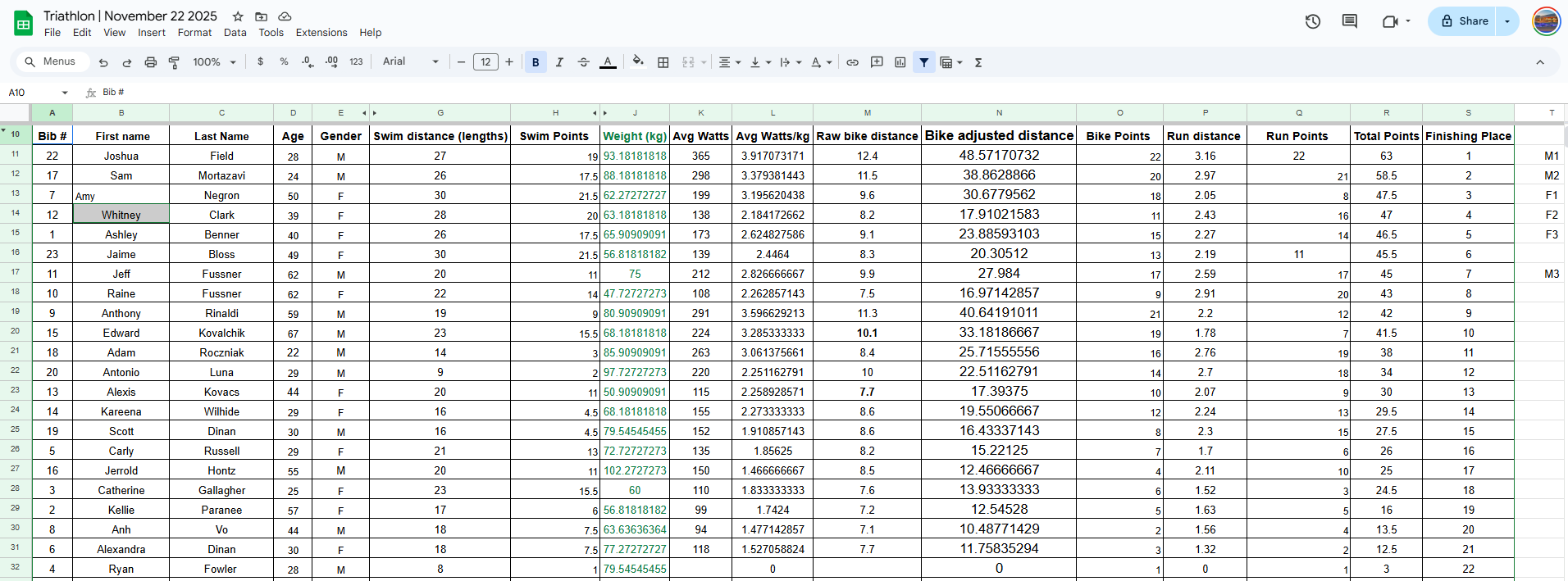VWC Indoor Triathlon Results